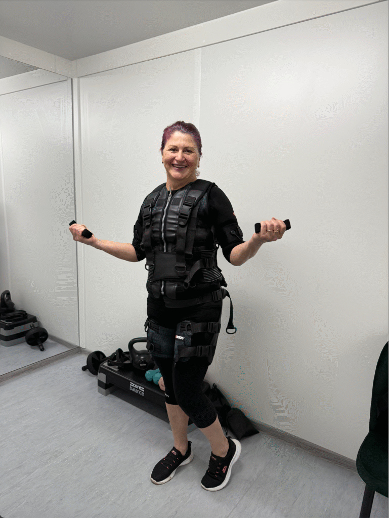 EMS (Electro Muscle Stimulation) training uses the latest XBody suit technology to give you a full-body workout in just 20 minutes — the equivalent of 90 minutes at the gym.